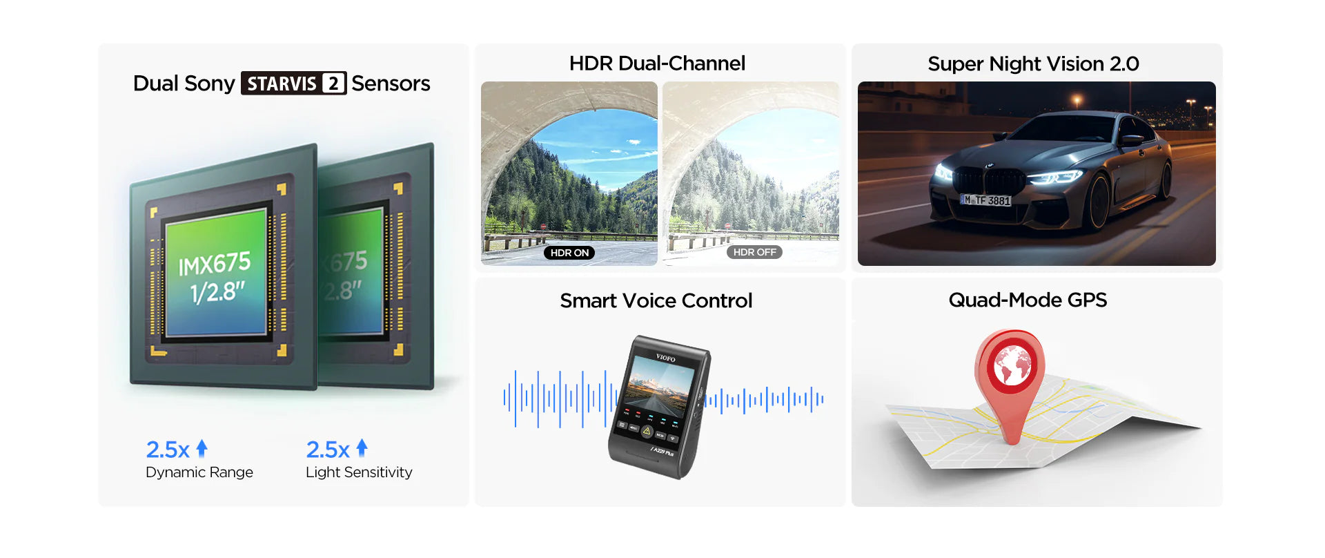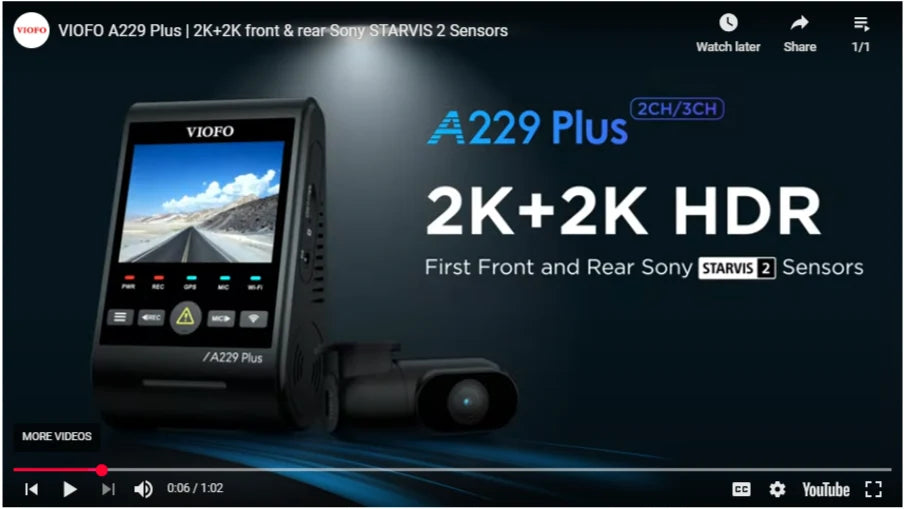 VIOFO A229 Plus 2CH Front and Rear 2K+2K HDR 5GHz Wi-Fi GPS Voice Control Dual Dash Camera with Sony STARVIS 2 Sensor