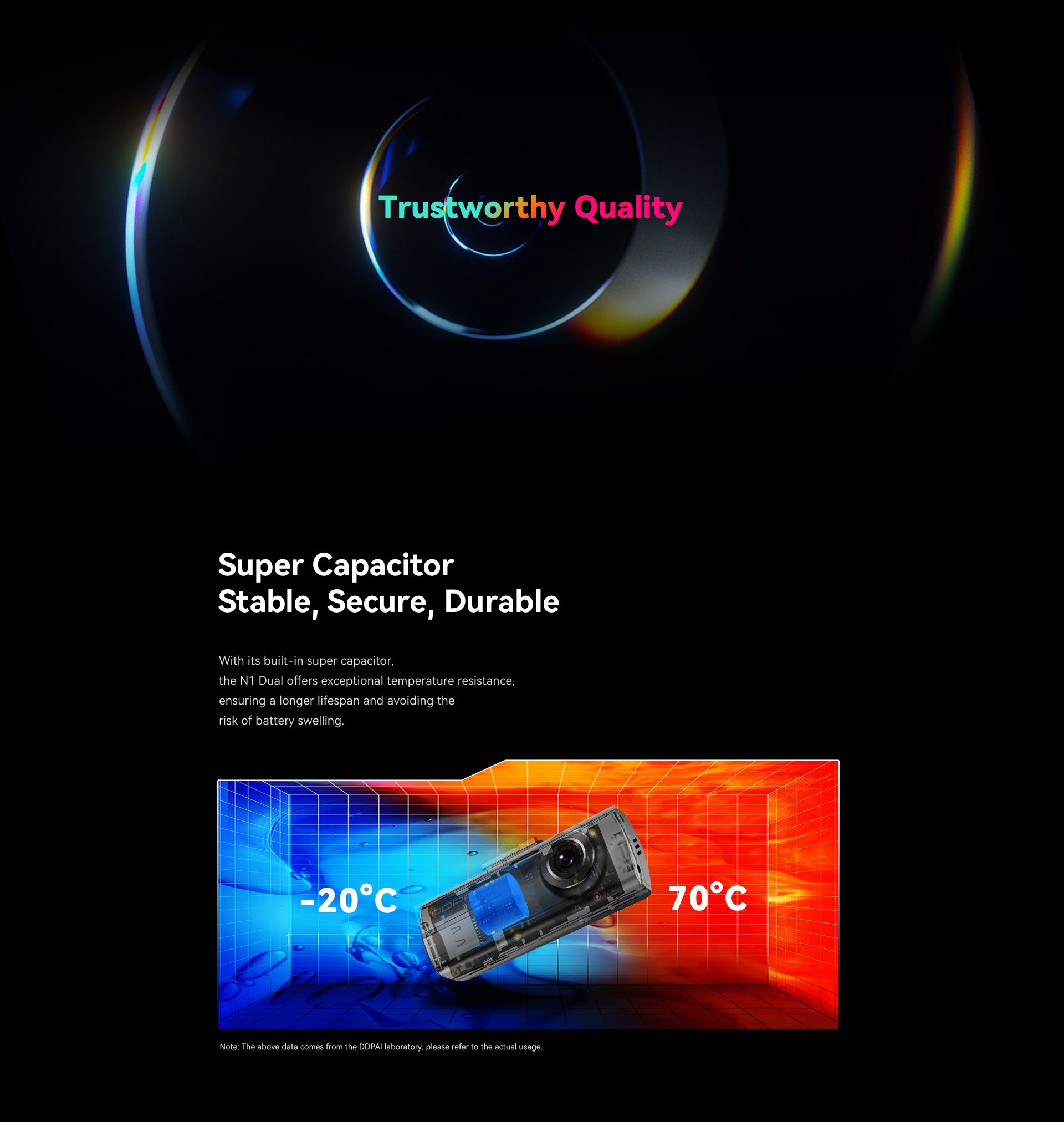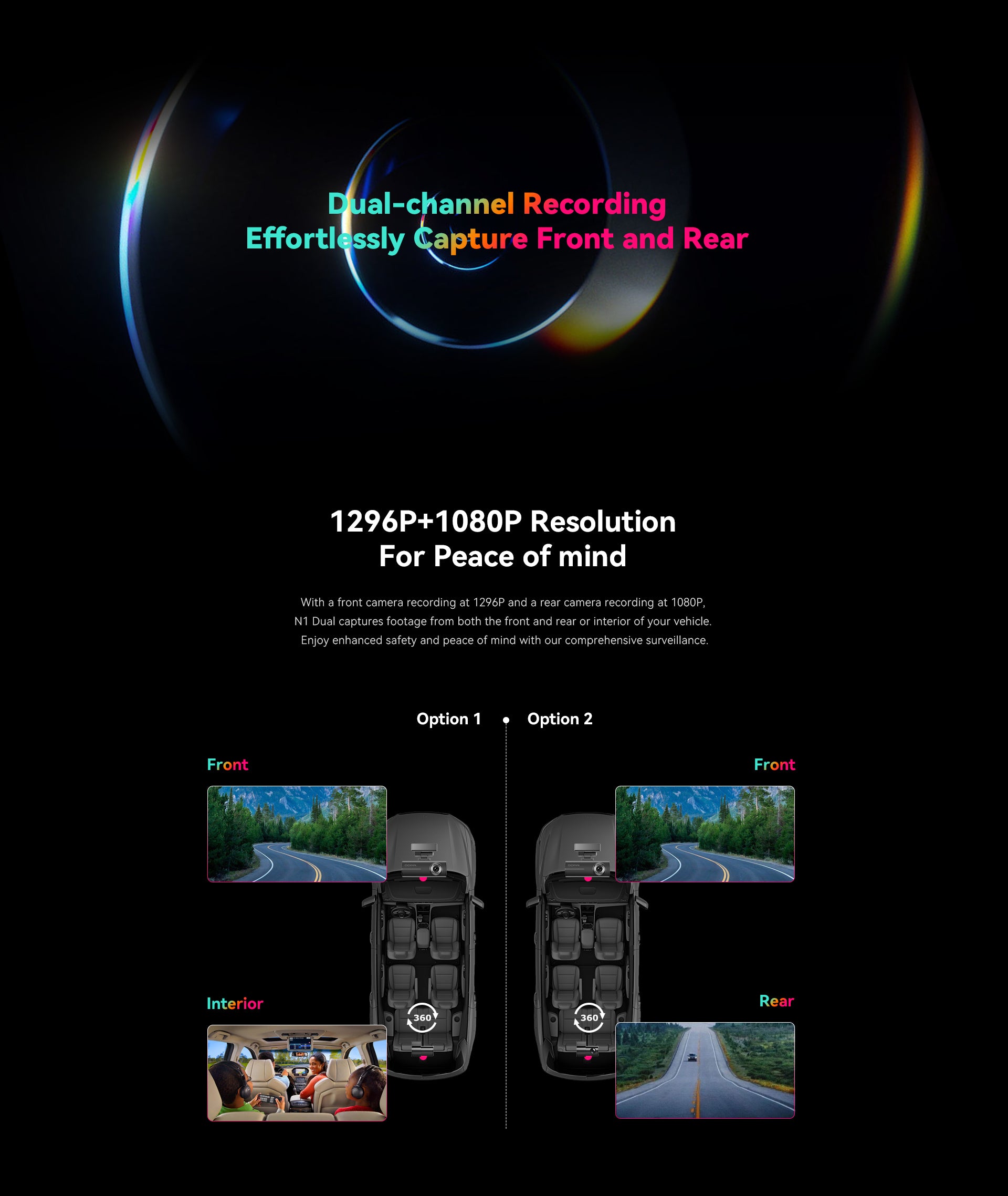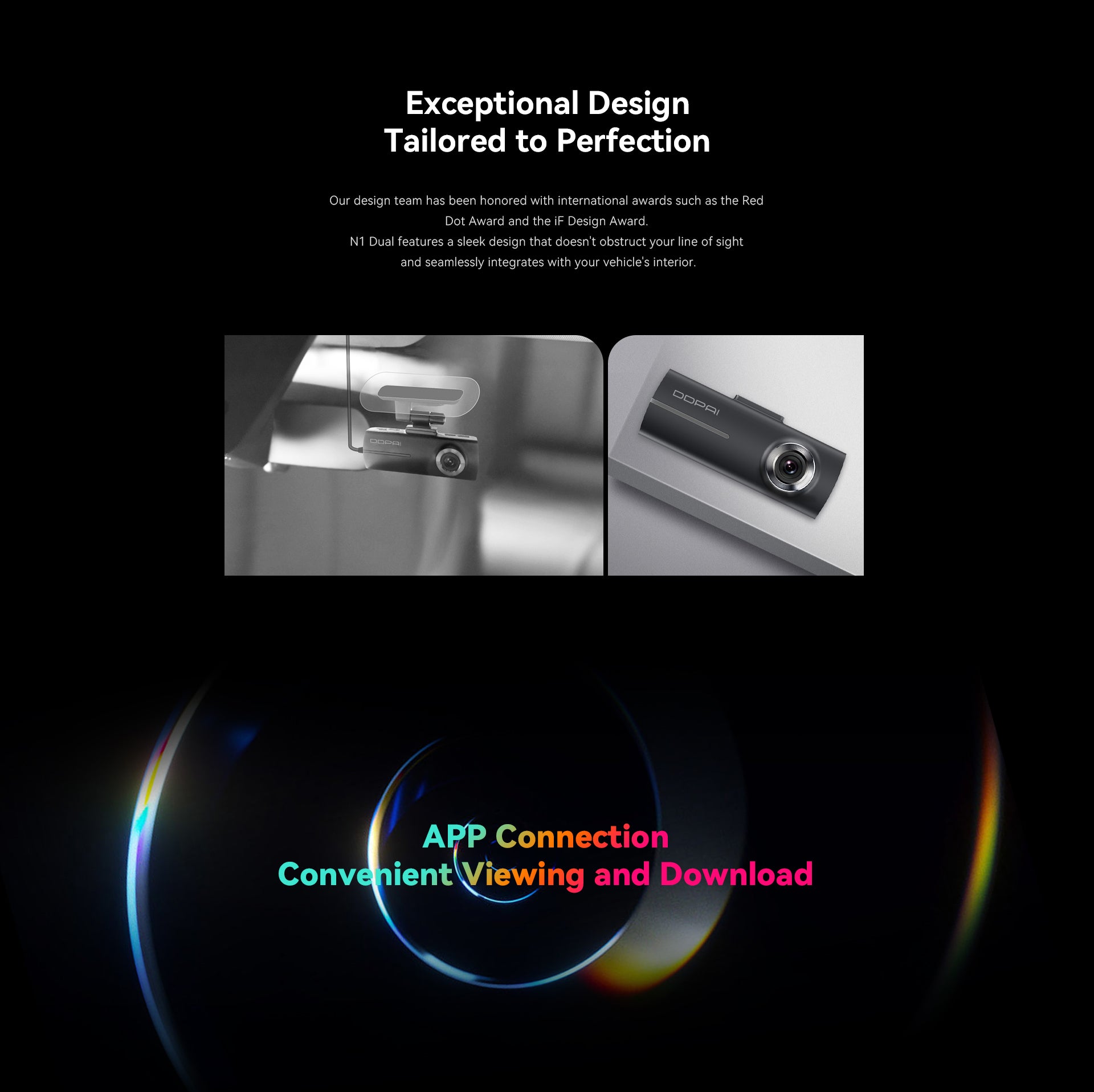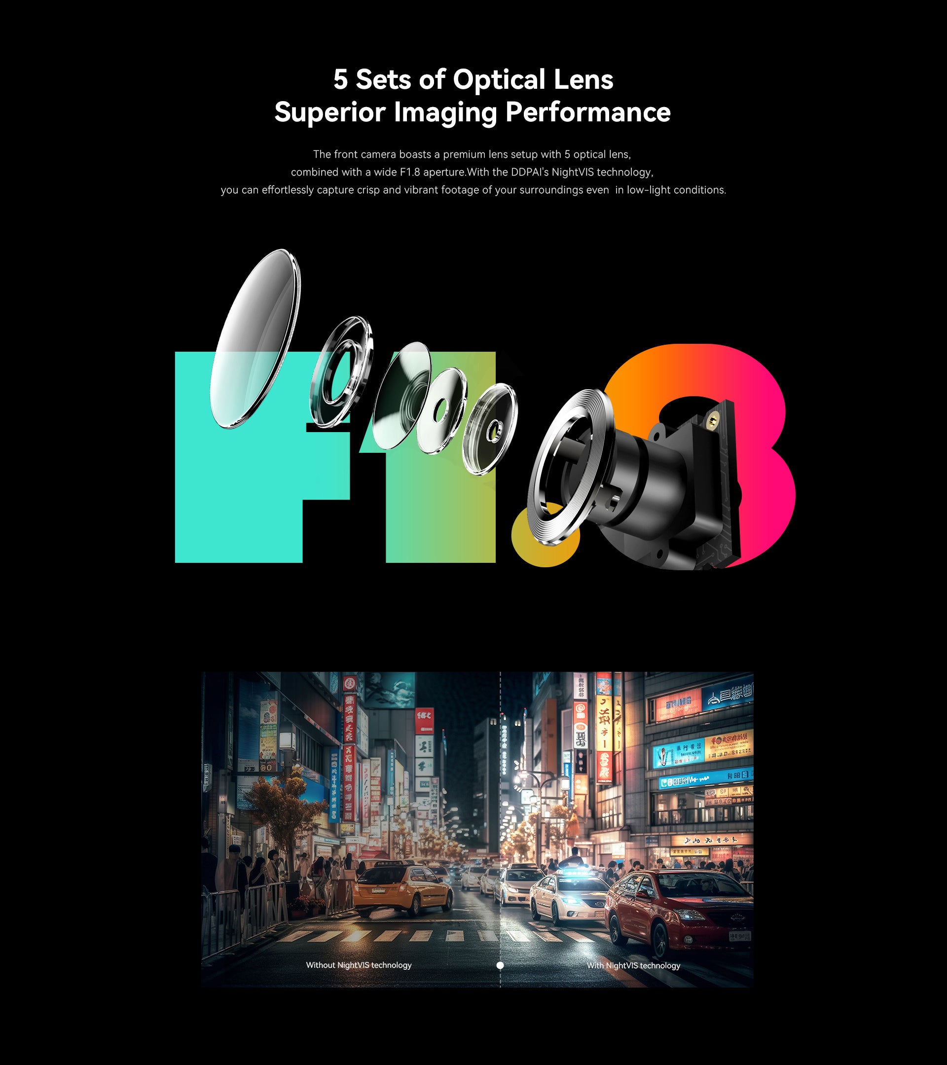 DDPAI N1 Dual Channel Car Dash Camera, 1296P + 1080P, F1.8 with NightVIS 5G Lens