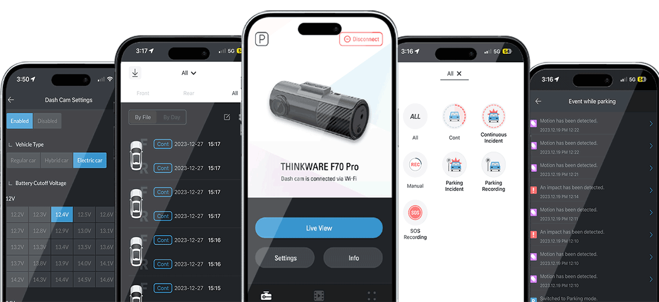 Effortlessly pair your dash cam with any compatible Android or iOS device using the THINKWARE DASH CAM LINK app. Once connected, you can easily adjust settings, replay footage, and download your latest driving videos on the go.