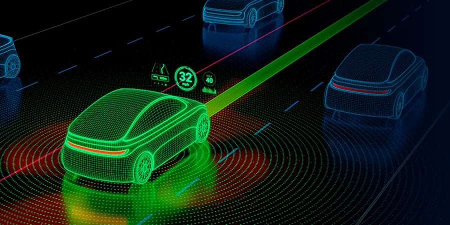 Calculates the speed and distance of the vehicle ahead, alerting the driver when the following distance becomes too close while travelling at speeds exceeding 25 mph.