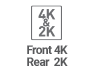 Front: 4K UHD 3840 x 2160 at 30 fps or 2K QHD 2560 x1440 at 60 fps