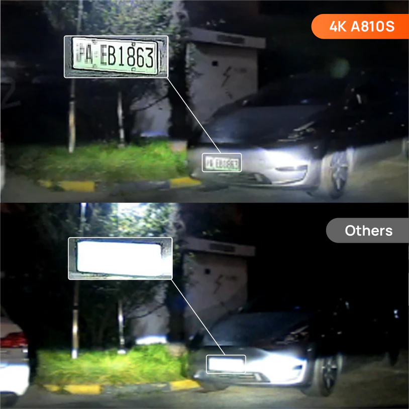 A dash cam's ability to provide clear, reliable evidence is essential, especially in challenging lighting conditions. While many so-called 4K dash cams still struggle in these scenarios, 70mai's 4K A810S has fine-tuned its image technology for superior performance. Equipped with the proprietary MaiColor Vivid+ Solution™, the A810S adapts to light and color changes, ensuring crisp details even during backlit driving, tunnel transitions, or in harsh weather.