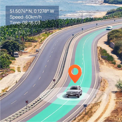 Conveniently pinpoint your real-time location, logs your speed and time, and assist your driving with voice alerts regarding lane departure, front car distance and attention to pedestrian, adding an extra layer of safety to your journey.