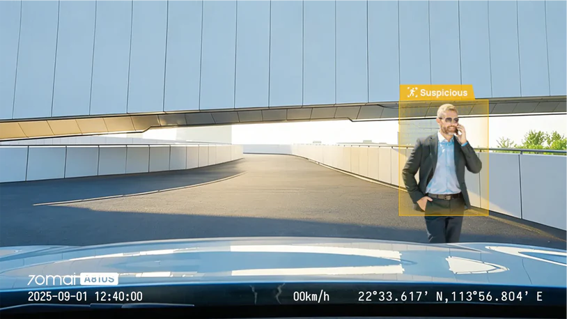 2) Motion detection: The Dash Cam will be in standby mode without recording when flameout. When the image algorithm running continuously on the Dash Cam detects a threatening scene to the vehicle and determines that the threat level has reached the level that needs to be recorded, it will trigger the recording of a 30-second-long parking surveillance video and store it in the parking surveillance video folder of the device album.