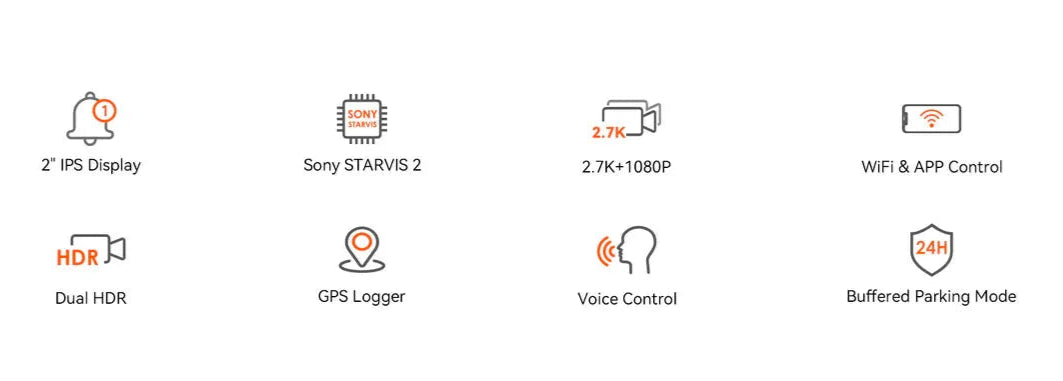 Low Frame Rate Recording allows your dash cam to continuously record at 1 FPS (one frame per second). Videos are played back at 30 FPS. Each 1-minute video covers a real-time period of 30 minutes. Please note: the camera won’t record sound in this mode.