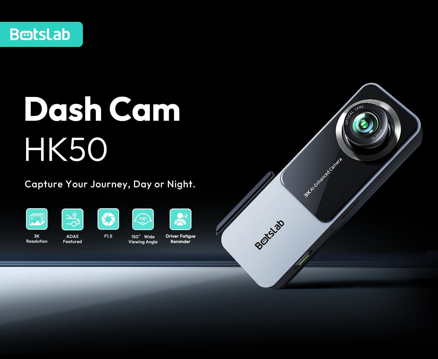 Botslab HK50 Wi-Fi Dash Cam – 1620p Smart In-Car Camera with 150° Wide Angle & Night Vision