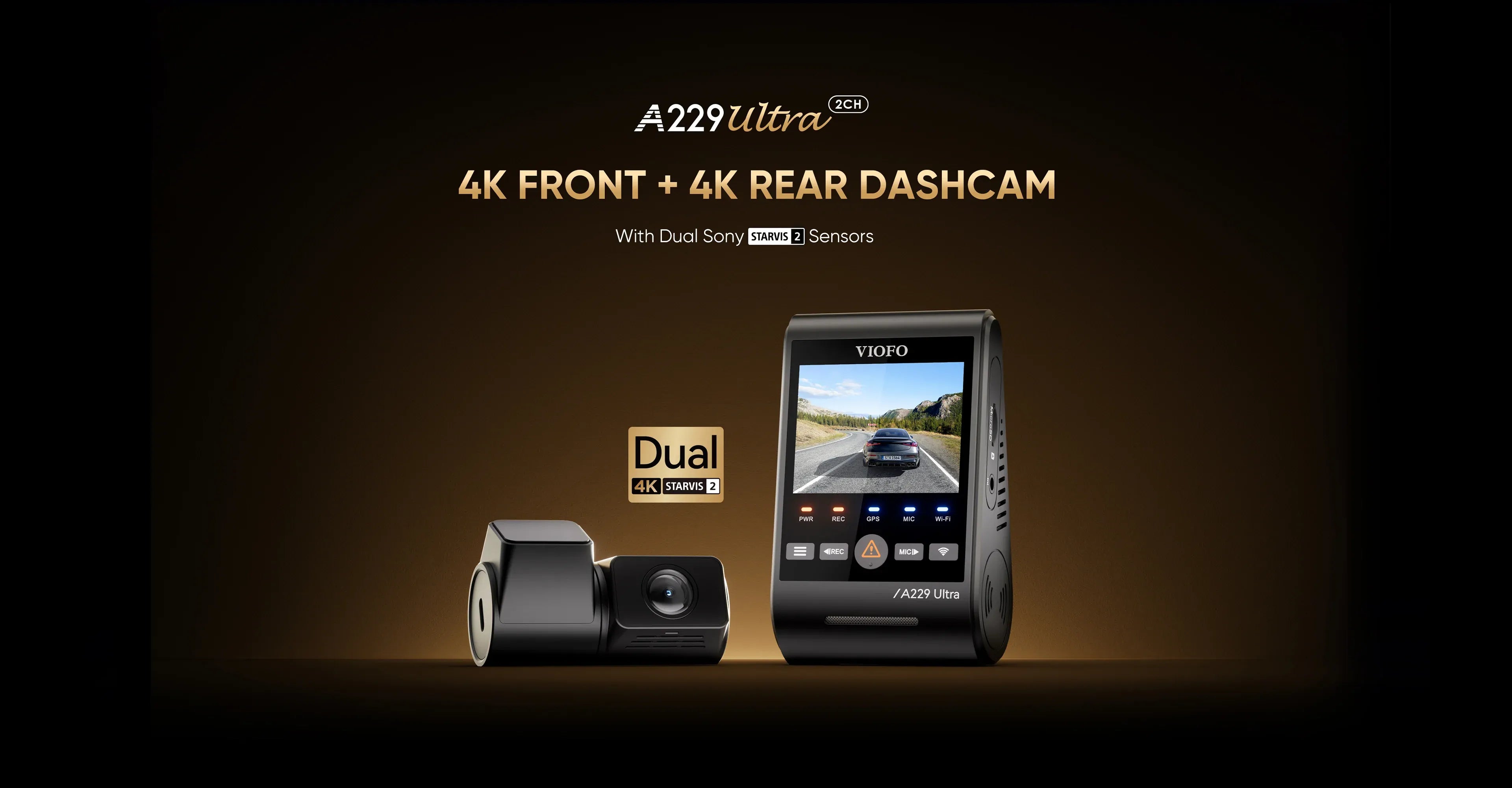VIOFO A229 Ultra 2CH 4K Front+4K Rear Dashcam with Dual Sony STARVIS 2 Sensors, 2-Channel 4K HDR, Ultra Fast 5GHz Wi-Fi & Precise GPS, Smart Voice Control