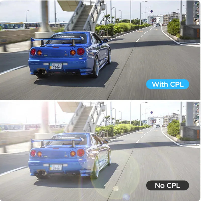 In addition to improving image quality, the CPL filter also acts as a shield to protect your dash cam lens from fingerprints, scratches and dirt.